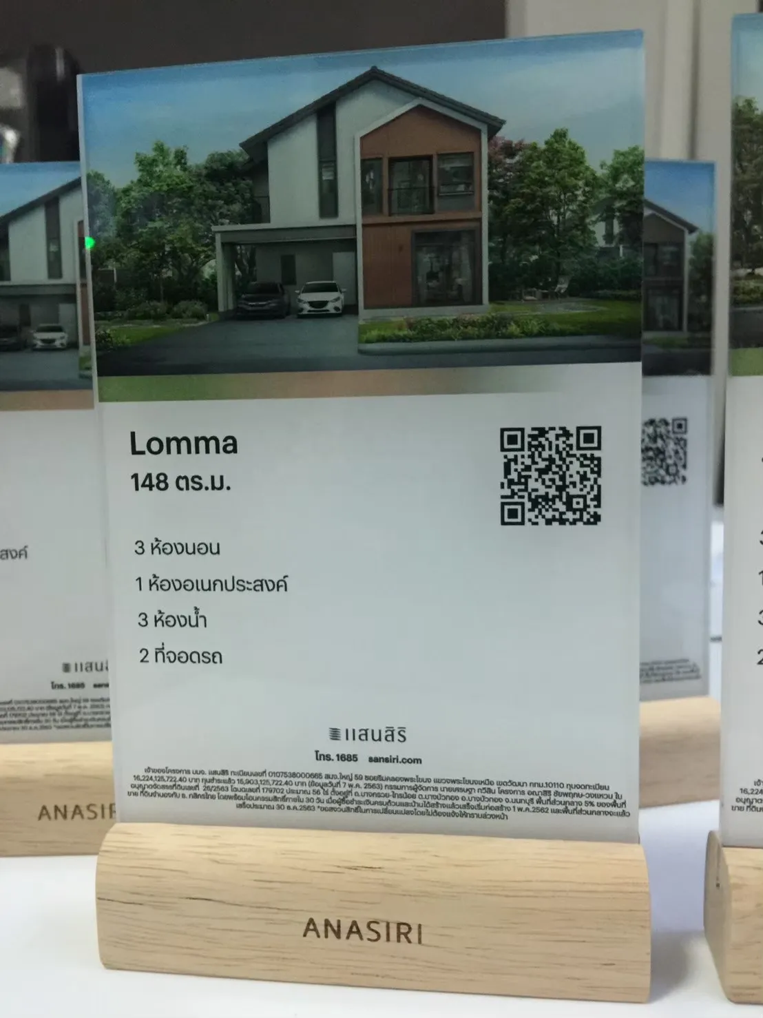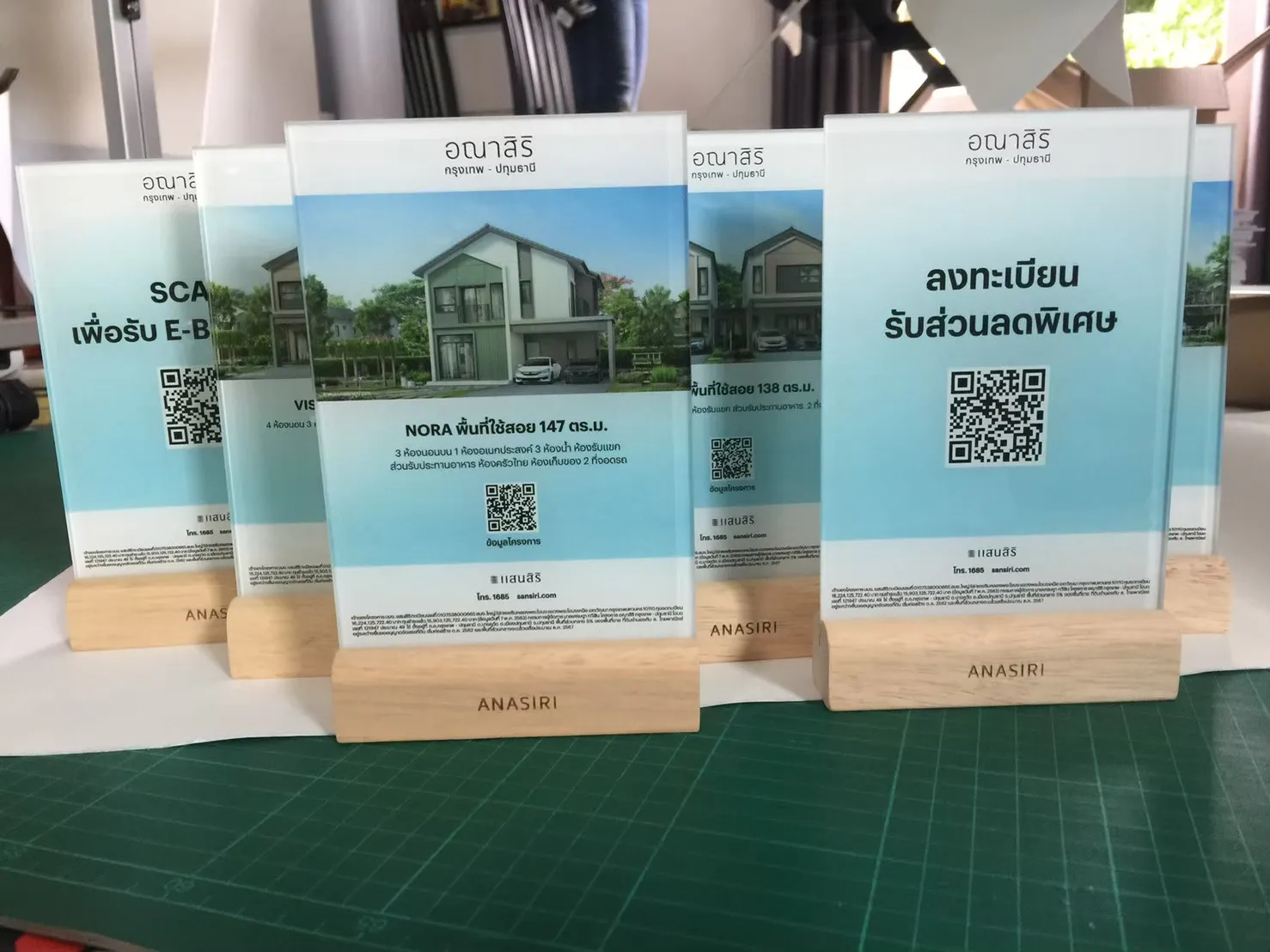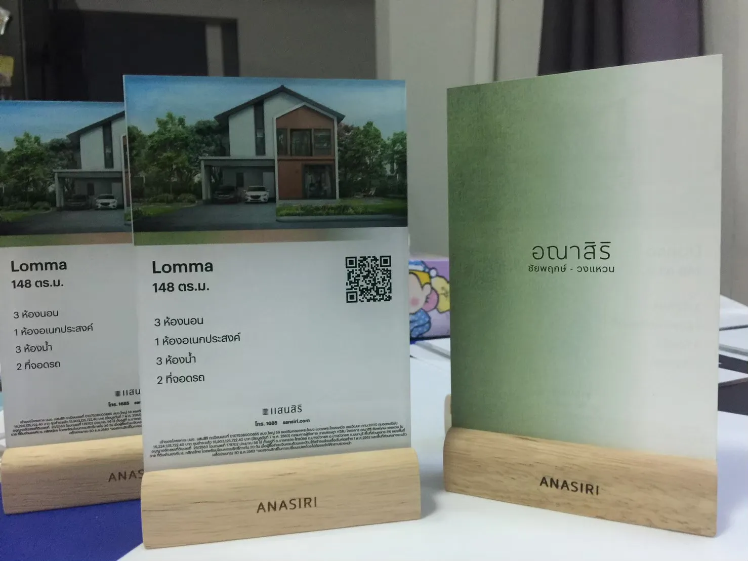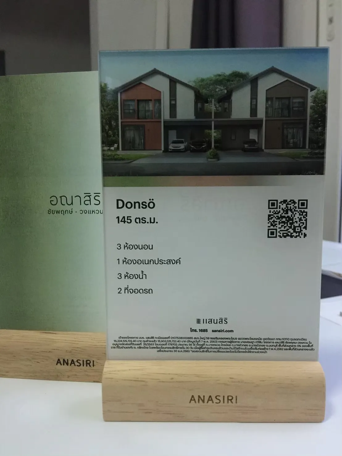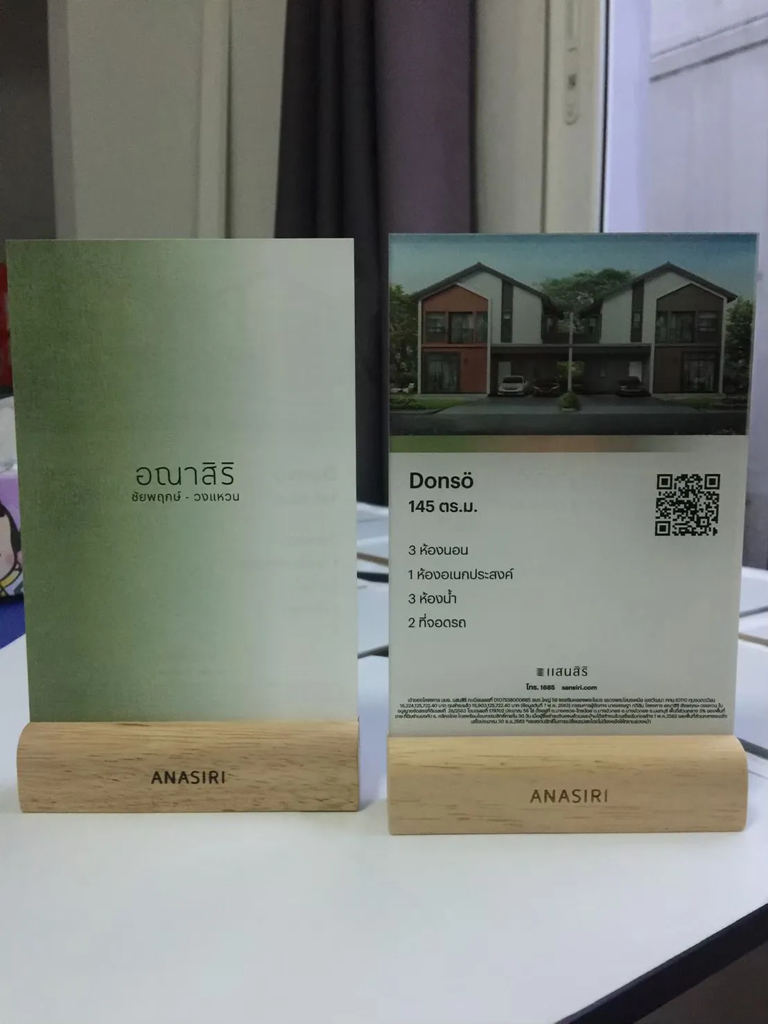 Tentcard อะคริลิค ฐานไม้ โครงการอณาสิริ สราญสิริ รังสิต 2 บมจ.แสนสิริ
