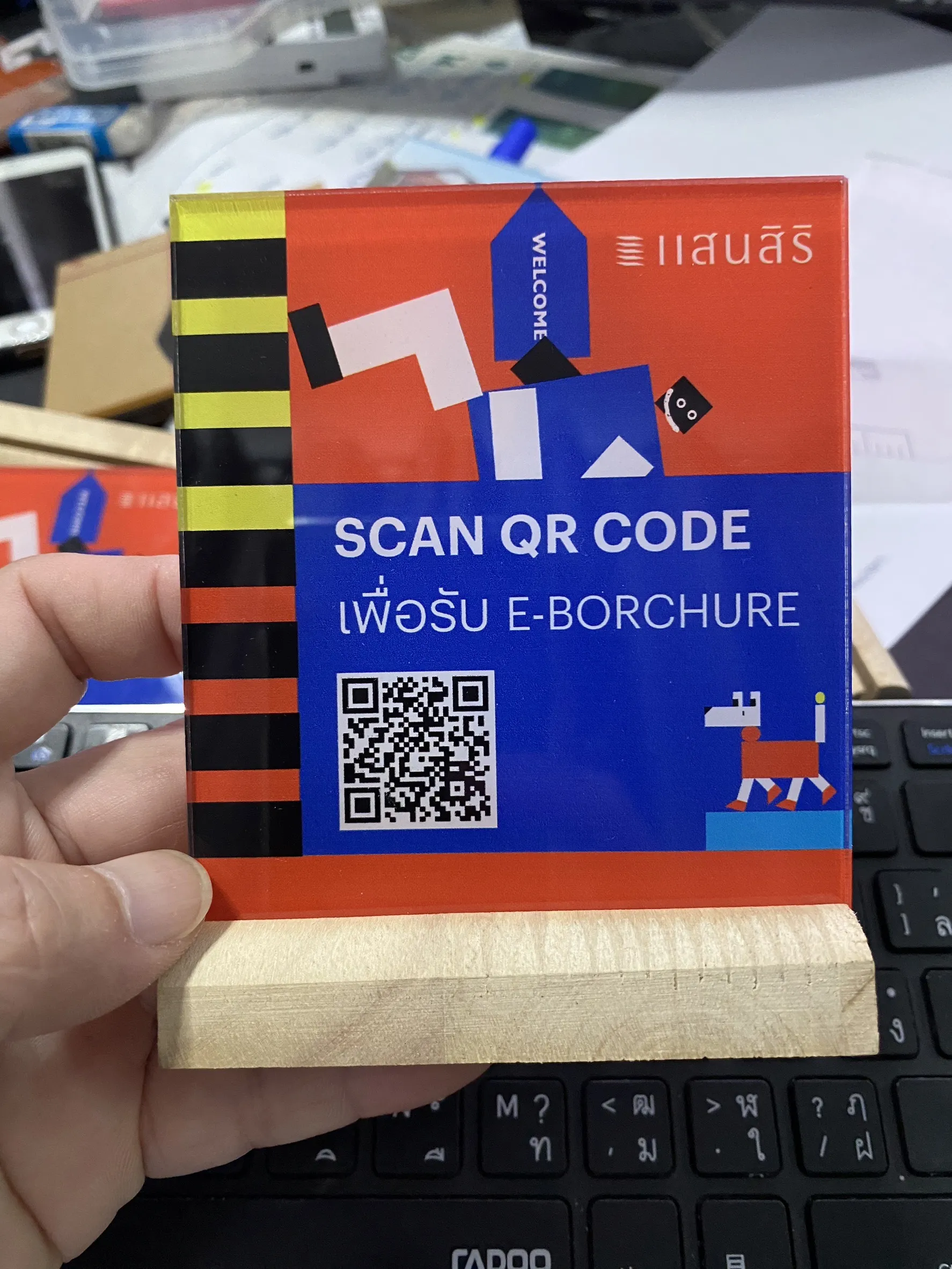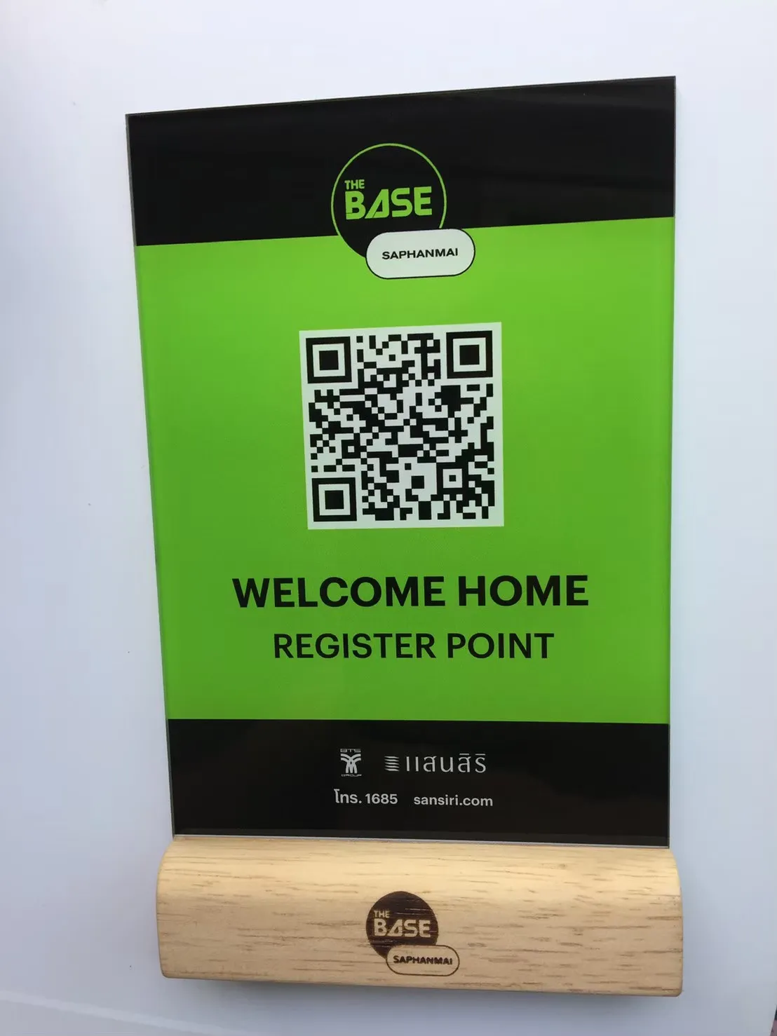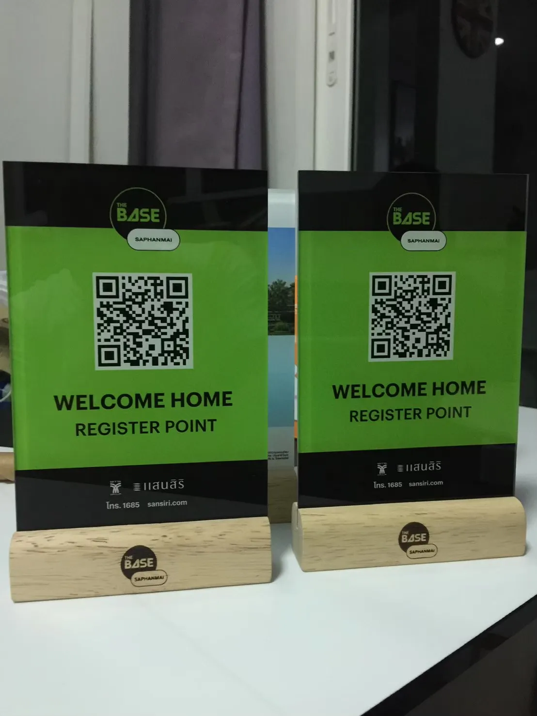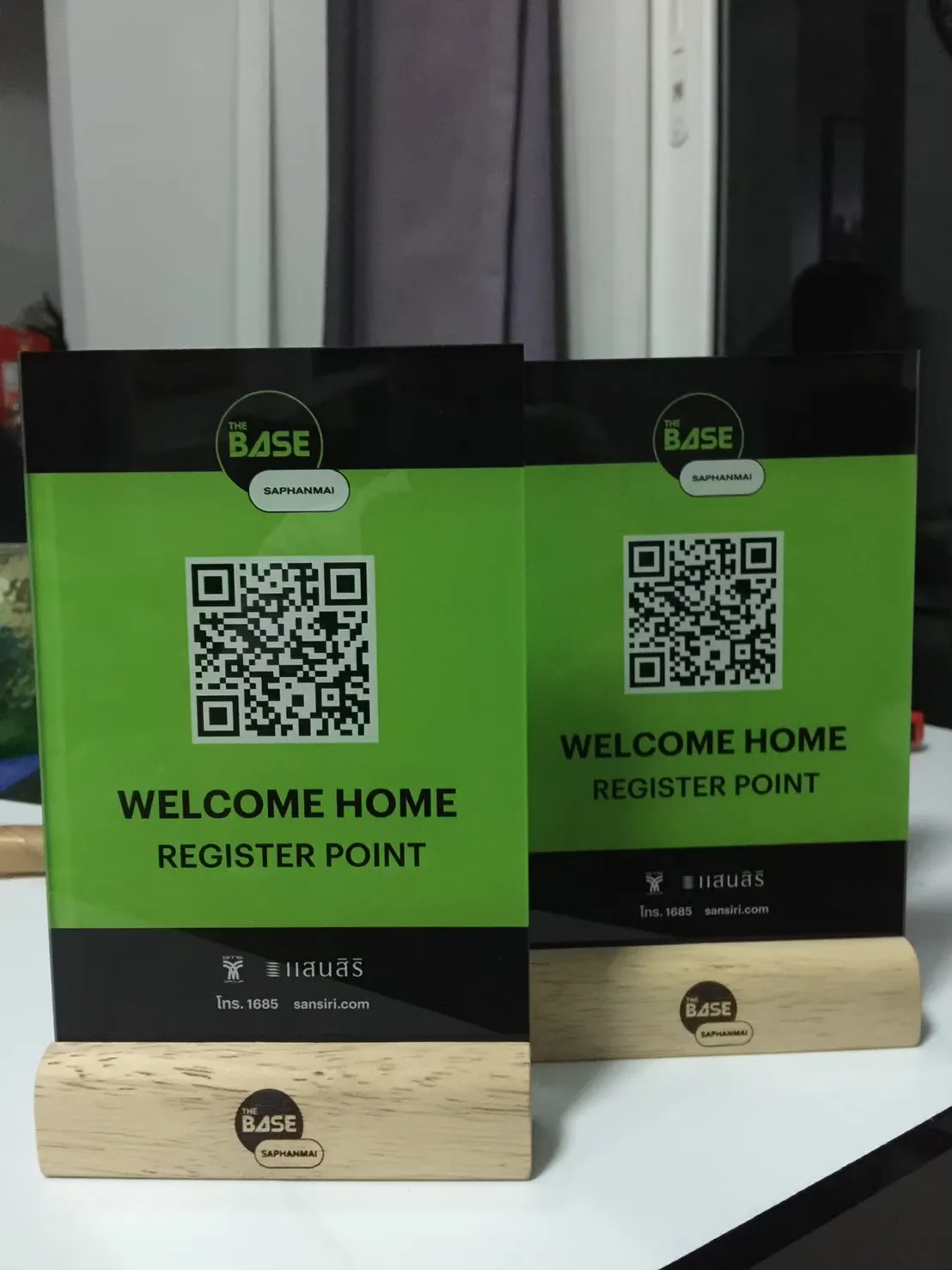 Tentcard อะคริลิค ฐานไม้ คอนโด เดอะเบส สะพานใหม่ บมจ.แสนสิริ